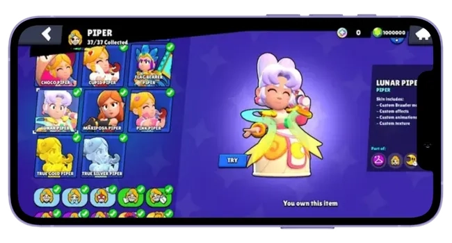Nulls Brawl’da, cihazlar, yıldız güçleri ve ekipmanlar gibi tüm gelişmiş öğeler başlangıçtan itibaren açılır. Bu, oyuncuların ilerlemeyi beklemeden veya para harcamadan farklı kurulumları ve stratejileri test etmelerine olanak tanır.